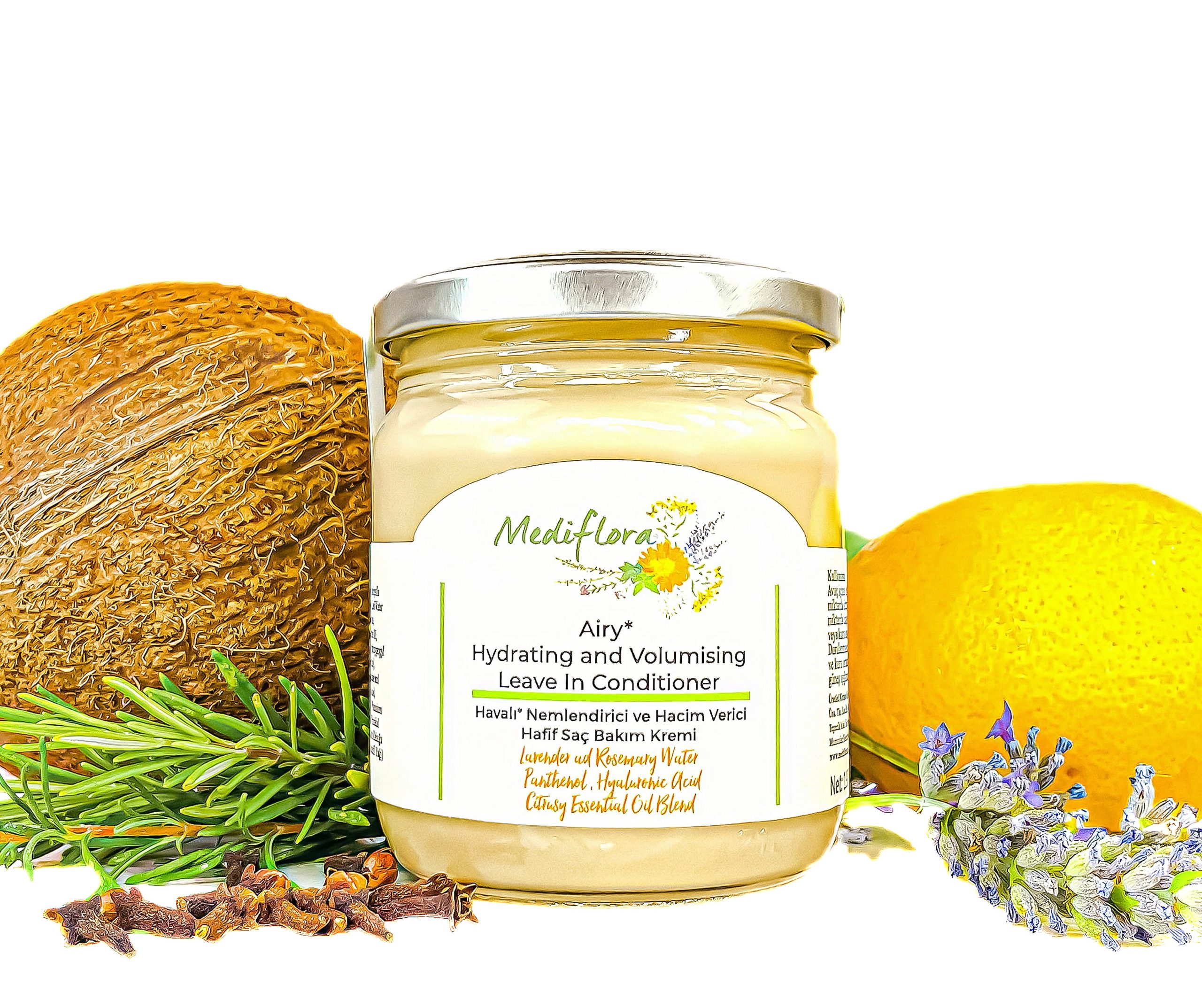 Çiftliğimizin lavanta ve biberiyelerinin aromatik suları ile üretilen hafif ve etkili, cam kavanozlu saç kremimiz ince telli veya yağlı saçları ağırlaştırmadan, hyaluronik asit, buğday proteini ve e vitamini ile ihtiyacı olan neme doyurur, saçlara yoğun hacim verir, portakal ve karanfil yağları ile parlaklık katar.